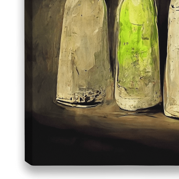 Stilleben mit Weinflaschen.