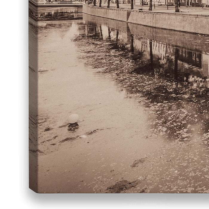 Weinlesestraßenansicht in die alte Hanseatic Ligastadt Kampen mit einem Retro- Sepiablick. Alle Autos werden vom Burgwal Kanal gelöscht, der Raum für das Hanseatic Ligafestival im Juni 2017 bildet.