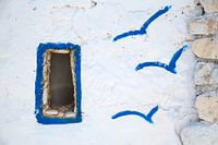 Weiße mit blauer griechischer Mauer auf der Kykladeninsel Kimolos.