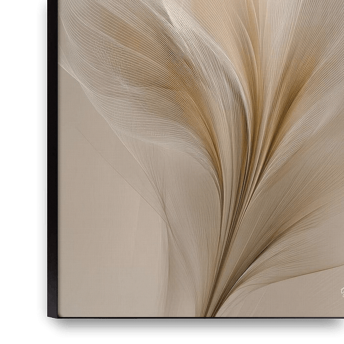 Bringen Sie Ruhe, Luxus und Raffinesse in Ihr Wohnzimmer mit diesen eleganten Gemälden in Weiß und Gold. Die weichen Formen der Blumen und Federn scheinen fast zu schweben, als wären sie in einem Moment der Stille eingefangen. Feine Linien, seidige Texturen und subtile goldene Akzente sorgen für einen schicken Look, ohne aufdringlich zu…