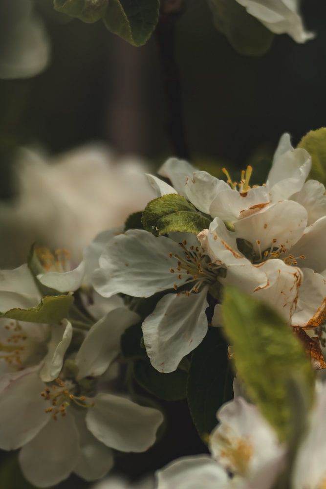Weiße Blüten an einem Obstbaum.