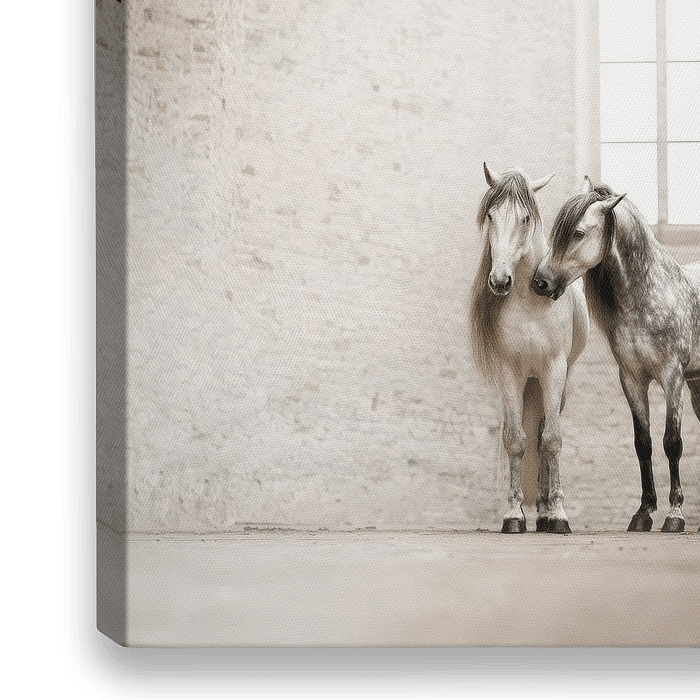 Über „Weiße Pferde in alter Kirche | Fotografie“ von Laura Dijkslag