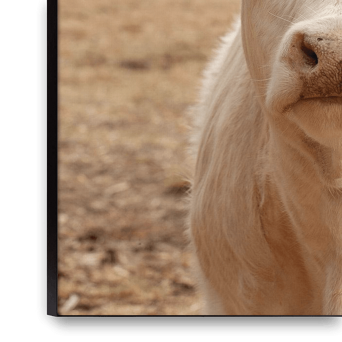 Bestelle dieses Kuh-Wandbild Weiße französische Charolais-Kuh von Andie Daleboudt als Reproduktion auf Leinwand, Alu-Dibond, als Poster, Fototapete oder Acrylglasbild.