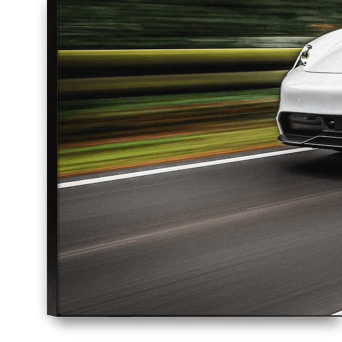 Bestelle das Foto Weißer Porsche Taycan 4S von Bas Fransen als Reproduktion auf Leinwand, Alu-Dibond, als Poster, Fototapete oder Acrylglasbild.