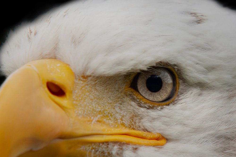Ein Porträt eines Weißkopfseeadlers, eines großen Raubvogels, der hauptsächlich in den USA und Kanada vorkommt. In den USA ist es ein Symbol.