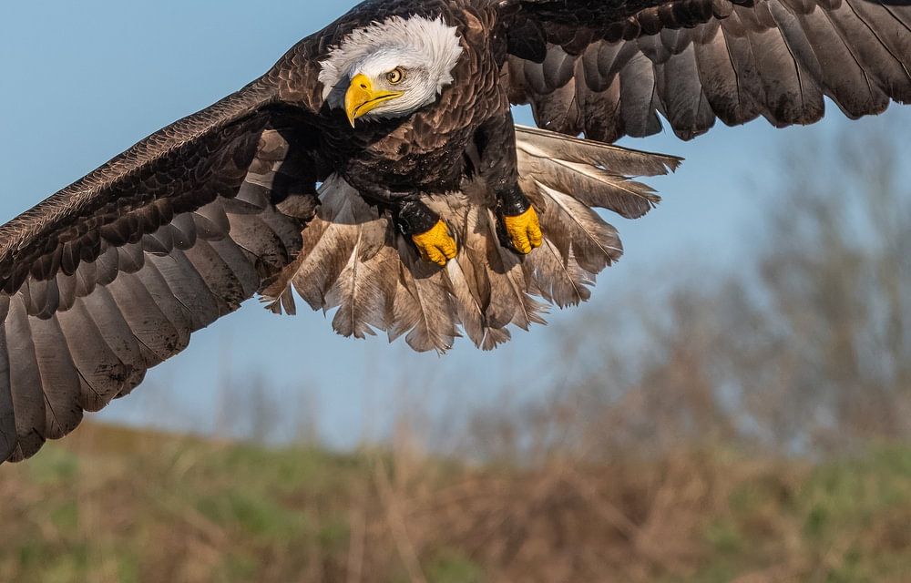 Amerikanische Weißkopfseeadler sind unglaublich große Vögel, sie können eine Flügelspannweite von 173 bis zu etwa 244 cm haben! Die Körperlänge des Vogels liegt zwischen 80 cm und einem Meter. Sie können rund 5 Kilogramm wiegen, wovon etwa 700 Gramm auf ihr Gefieder entfallen.