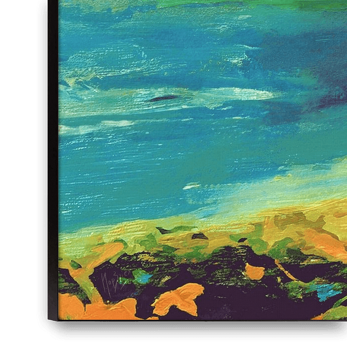 Ihre gewählte Kunst auf Leinwand, gespannt in einem Aluminiumrahmen. Schnell und einfach austauschbar für eine frische Ausstrahlung und ganz nach Ihren Wünschen.