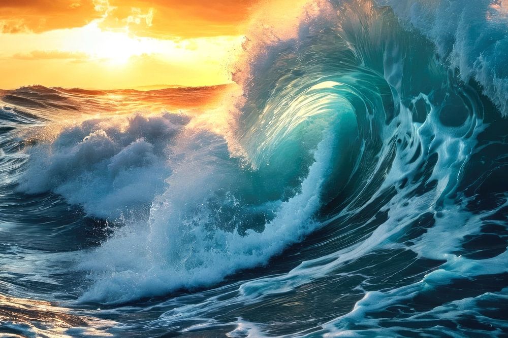 Malerische Welle bei unruhiger See in fantastischer Lichtstimmung