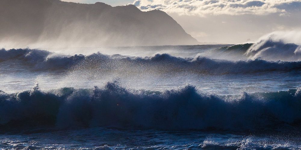 Die schöne portugiesische Insel Madeira liegt vor der afrikanischen Küste im Atlantik. Die Sonne geht in den Abendstunden langsam unter, mit den zunehmenden turbulenten Winden. Die See, die von Minute zu Minute rauer wird, aber eine beeindruckende Szene bietet.