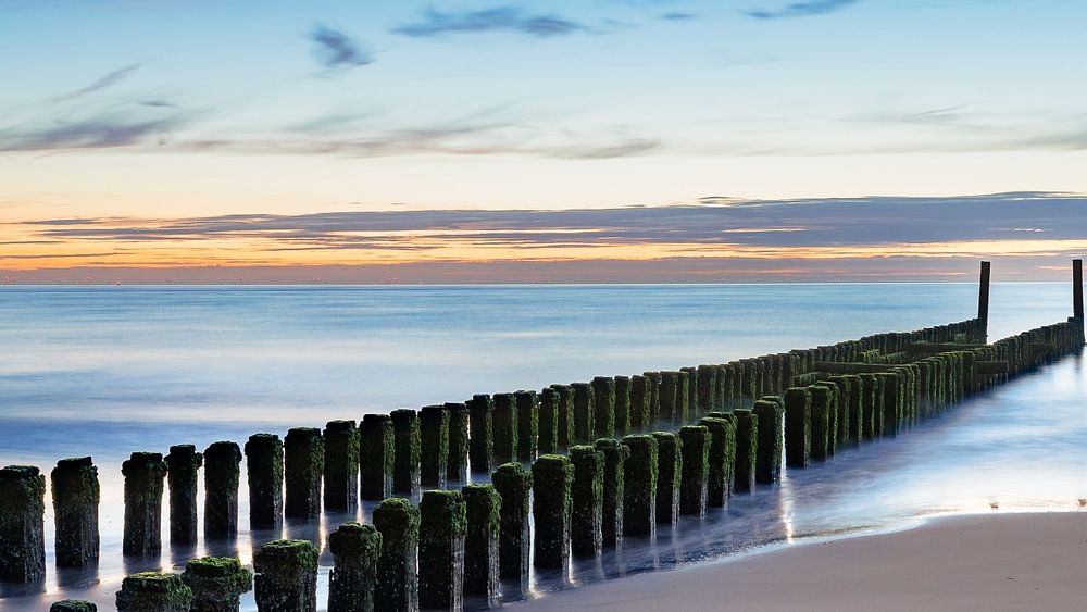 Blick auf den Strand an der Küste von Zeeland am Ende des sonnigen Sommers. Die Sonne ist gerade hinter dem Horizont versunken, und der Himmel färbt sich rot, orange und violett-rot. Schleierwolken und Regenwolken fächern sich langsam über der Nordsee auf, und die leidenden Linien der Holzpfähle nehmen Sie mit in die Tiefe dieses Bildes. Das Meer wogt langsam auf den Strand zu, und die lange Verschlusszeit schafft einen ruhigen, trägen Abend, von dem die Stille ausgeht. Als Fotograf liebe ich es, die Unendlichkeit und die Details der niederländischen Natur in starken Bildern einzufangen. Indem ich verschiedene Techniken anwende und sie mit Perspektive und Komposition kombiniere, schaffe ich eine eigene Dynamik, die in meinen Fotografien oft zu erkennen ist. Mit meinen Fotos versuche ich, einen Moment in der Zeit einzufangen, in dem man das Bild fast zu berühren scheint und die Atmosphäre fast greifbar ist. Dieses Foto ist in hoher Qualität für den Druck auf Fotodruck, Fototapete, Druckanwendungen oder Medienausdrucke erhältlich. Natürlich eignet sich ein stimmungsvolles Landschaftsfoto dieser Küstenlandschaft auch sehr gut für die Gestaltung von Innenräumen und Büros, Geschäftsräumen oder als Bilddatenbank für Ihre Inhalte und Ihr Marketing. Heben Sie die schöne niederländische Natur & Landschaften auf einzigartige Weise hervor und genießen Sie jeden Tag besondere niederländische Landschaftsfotografie.