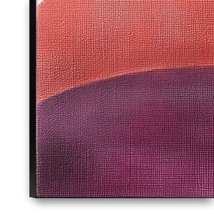 Undulating Warmth Horizon - Dieses abstrakte Gemälde zeigt geschichtete, wellenförmige Formen in einem Farbenspiel aus tiefem Rot, Violett und Orange, das in einen weichen orangeroten Horizont mündet, der Ruhe und Wärme ausstrahlt.
