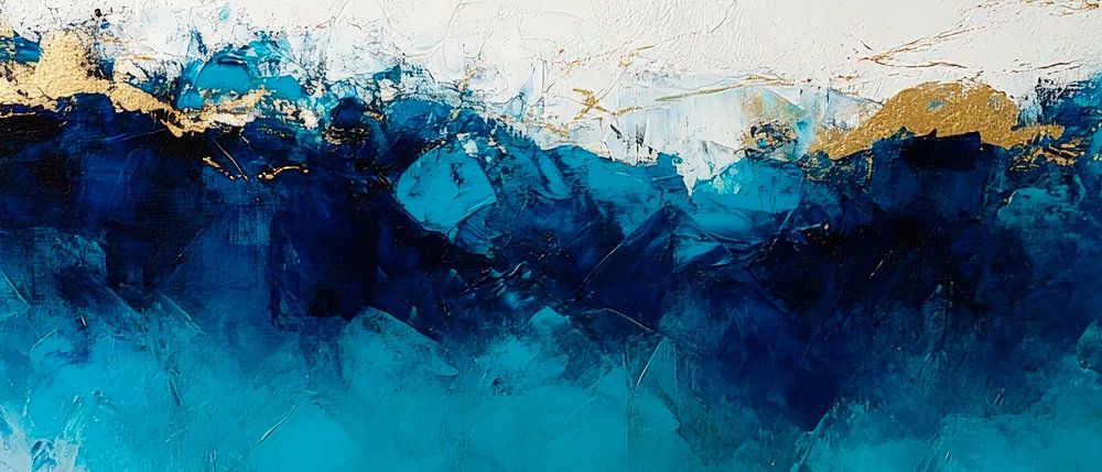 In harmonischen Blau- und Goldtönen entfaltet sich eine Welle, die an die Tiefe des Ozeans erinnert. Die kraftvolle Dynamik der Farben zieht den Betrachter in eine Welt der Ruhe und Inspiration. Ideal für das Wohnzimmer, setzt dieses Kunstwerk einen eleganten Akzent und schafft eine entspannende Atmosphäre.