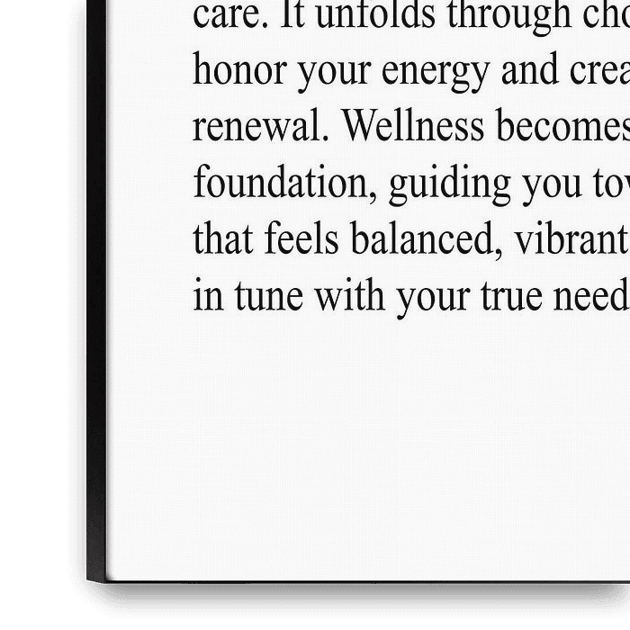 Dieses minimalistische Typografie-Poster stellt *Wellness* als harmonischen Zustand von Ausgeglichenheit und Erneuerung dar. Die helle Gestaltung schafft Leichtigkeit und Ruhe und passt ideal in moderne, achtsame Wohnräume.