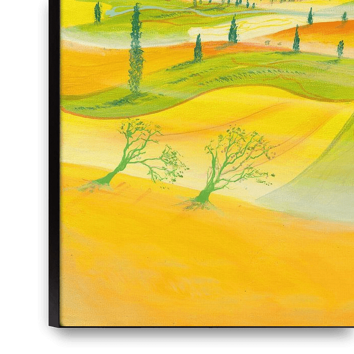 Ihre gewählte Kunst auf Leinwand, gespannt in einem Aluminiumrahmen. Schnell und einfach austauschbar für eine frische Ausstrahlung und ganz nach Ihren Wünschen.