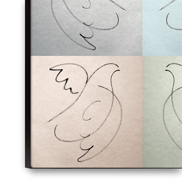 Bestelle dieses Vögel Wandbild Weltfrieden von KUNST Eva Maria als Reproduktion auf Leinwand, Alu-Dibond, als Poster, Fototapete, ArtFrame oder Acrylglasbild, maßgefertigt in höchster Qualität.