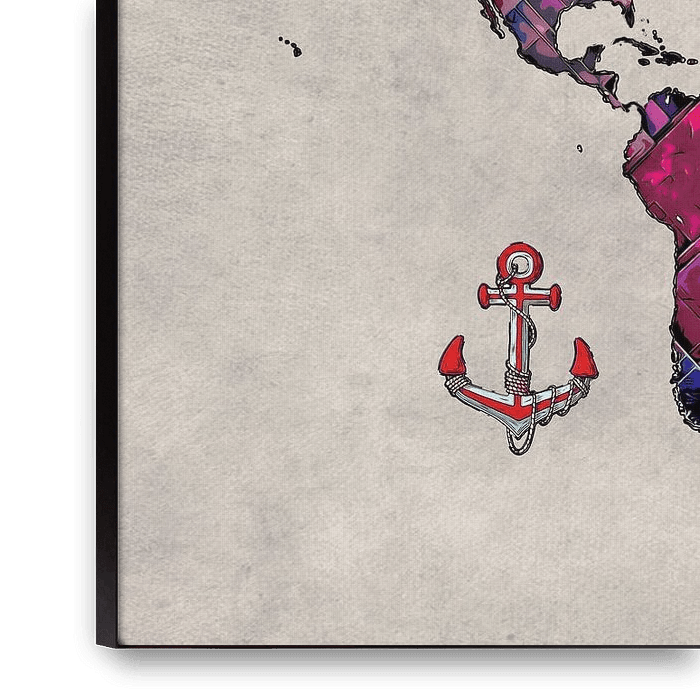 Bestelle dieses abstrakte Wandbild Weltkarte Kunst rot lila #Karte #Weltkarte von JBJart Justyna Jaszke als Reproduktion auf Leinwand, Alu-Dibond, als Poster, Fototapete oder Acrylglasbild.