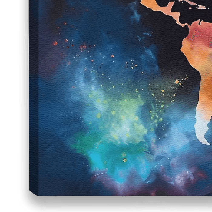 Bestelle dieses abstrakte Wandbild Weltkarte im Weltraum von Maps Are Art als Reproduktion auf Leinwand, Alu-Dibond, als Poster, Fototapete oder Acrylglasbild.