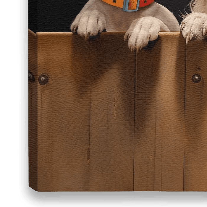 Kunstwerk einer Gruppe von neugierigen Hunden.