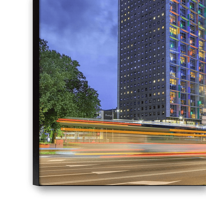 Die 140 Meter beleuchtetes West Point an der Dämmerung, eines der höchsten Wohntürme, Tilburg, Niederlande,