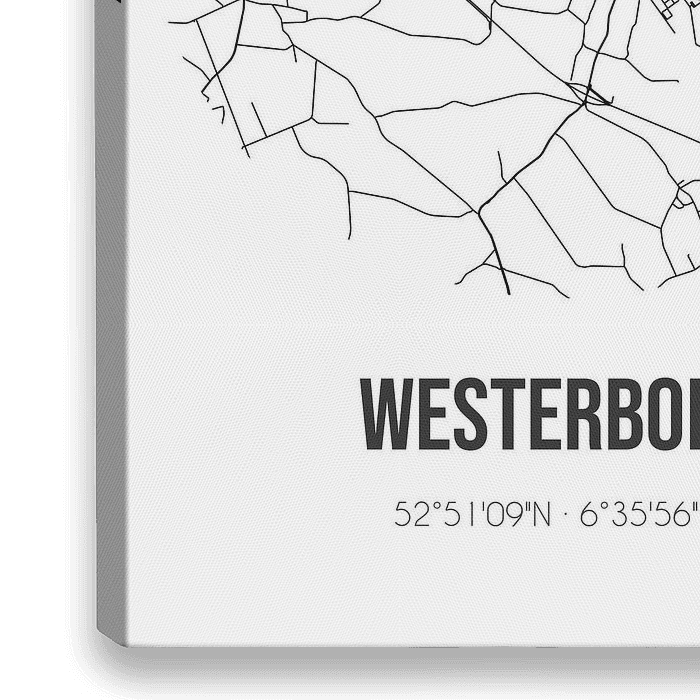Bestelle dieses abstrakte Wandbild Westerbork (Drenthe) | Karte | Schwarz und Weiß von Ortsdrucke als Reproduktion auf Leinwand, Alu-Dibond, als Poster, Fototapete oder Acrylglasbild.