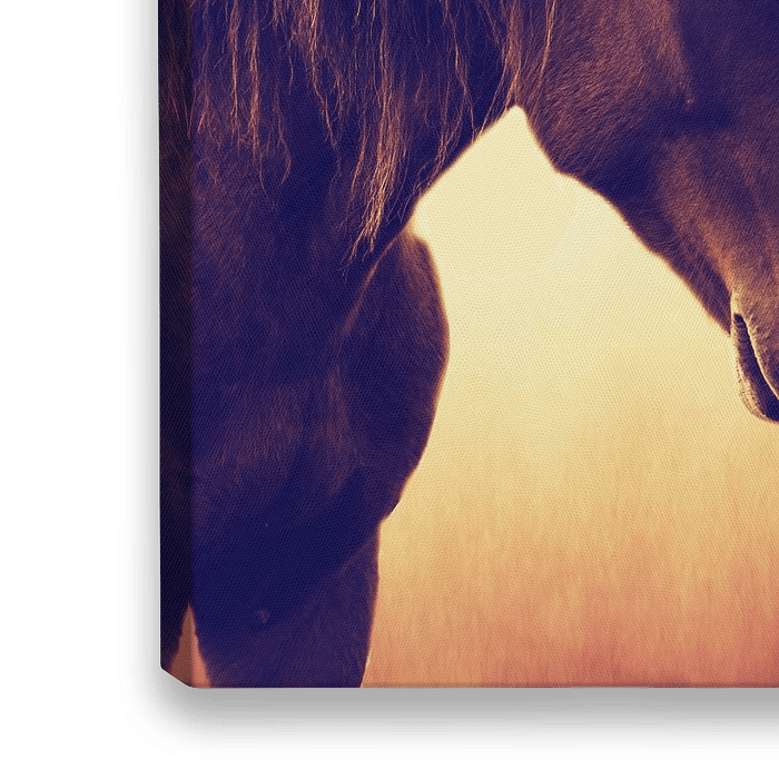 Dunkelbrauner Pferdekopf im Detail, mit feiner Texture als Hintergrund, sehr dekorative Fotografie als Hingucker für ihr Zuhause.