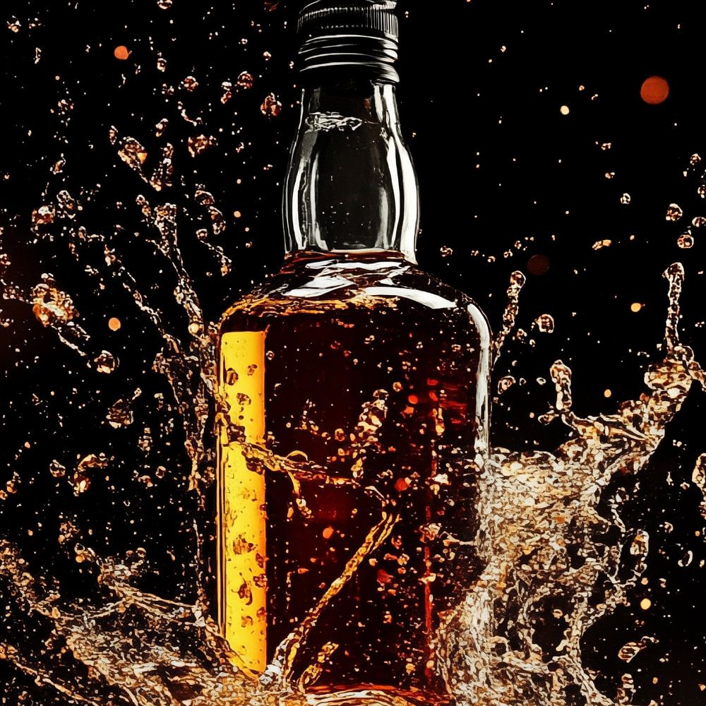 Whiskeyflaschen-Gemälde, das eine elegante und luxuriöse Ergänzung für jeden Raum darstellt. Mit seinem einzigartigen und stilvollen Look ist es ein echter Blickfang. Die brillanten Minimalfarben und das ungewöhnliche Design machen dieses Kunstwerk zu 100% einzigartig und originell. Es ist der perfekte Fotodruck, um Ihr Interieur zu vervollständigen.