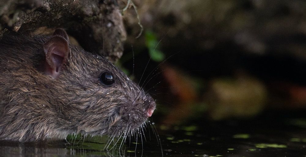 Ein einzigartiger Aussichtspunkt macht dieses Foto der Wanderratte zu einem Genuss. Direkt auf der Höhe der Wasseroberfläche ist man mit der Kreatur untergebracht. Wie schön die Natur doch sein kann.