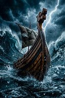 Bestelle das digitale Kunst Bild Wikingers Sturmritt von Mike Maes als Reproduktion auf Leinwand, Alu-Dibond, als Poster, Fototapete oder Acrylglasbild.