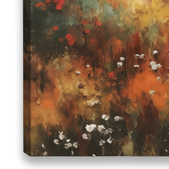 Ein Eindruck von einem Wildblumenfeld in bunter Blüte. Inspiriert von Monet und Pierre-August Renoir. Das Kunstwerk eignet sich für Räume mit einem ländlichen, farbenfrohen, natürlichen und fröhlichen Thema.