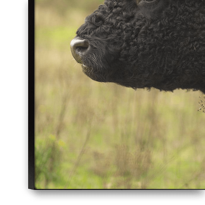 Bestelle dieses Kuh-Wandbild Wilde Kuh von Renate Weekhout als Reproduktion auf Leinwand, Alu-Dibond, als Poster, Fototapete oder Acrylglasbild.