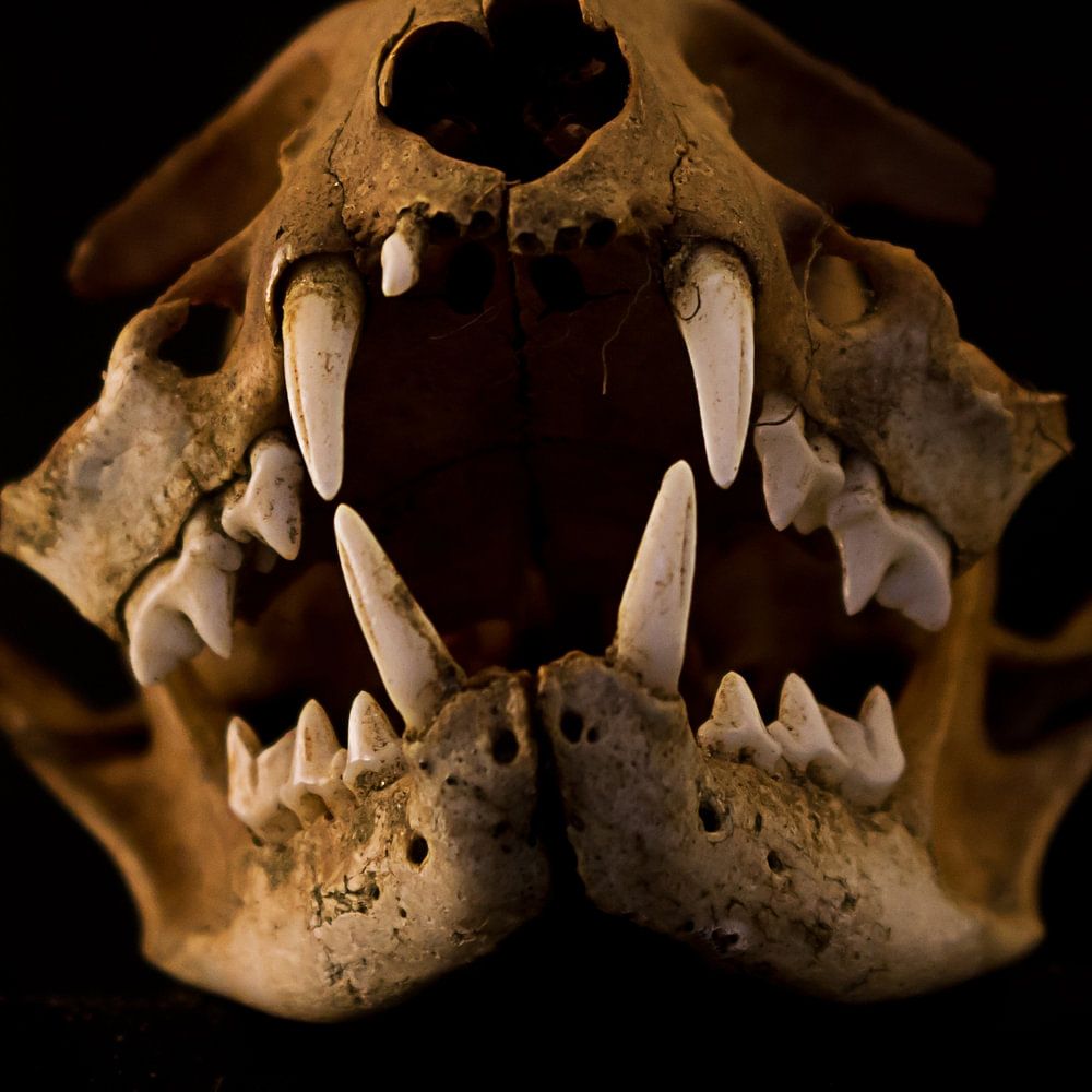 Wenn Sie zufällig einen Schädel finden, sollten Sie ihn verewigen. Nahaufnahme eines Marderschädels.
