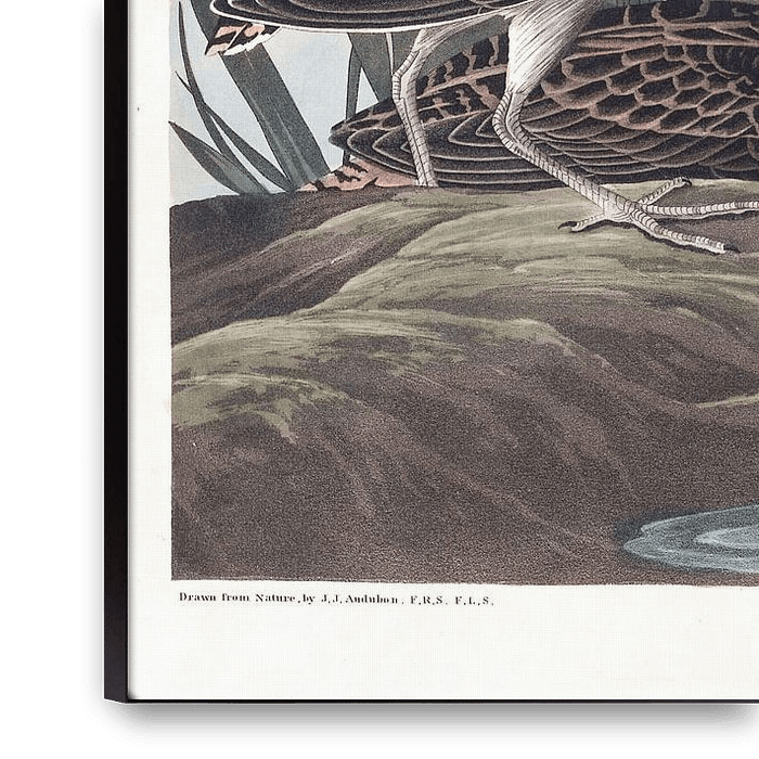 John James Audubon wurde am 26. April 1785 in Les Cayes, Santo Domingo, Frankreich (heute Haiti) geboren. Aus dem Nachlass seines Vaters in Pennsylvania machte Audubon die ersten amerikanischen Vogel-Banding-Experimente. Er fing an, alle Dinge ornithologisch zu sammeln und Bleistift- und Pastellskizzen von Vögeln zu machen. Als sein Selbstvertrauen als Künstler wuchs, wagte er sich in Aquarelle, das Medium, das er am häufigsten verwenden würde. Audubon wurde ein reisender Künstler, der gelegentliche Schüler unterrichtet, aber immer lokale Vögel und ihre natürlichen Lebensräume malt. Sein Hauptwerk, ein Farbplattenbuch mit dem Titel The Birds of America (1827-1839), gilt als eines der schönsten ornithologischen Werke, die je angefertigt wurden. Audubon starb am 27. Januar 1851 in New York City. Hinweis: Das Kunstwerk kann auch ohne begleitenden Text in der Abbildung erhalten werden. Bitte kontaktieren Sie uns dafür.