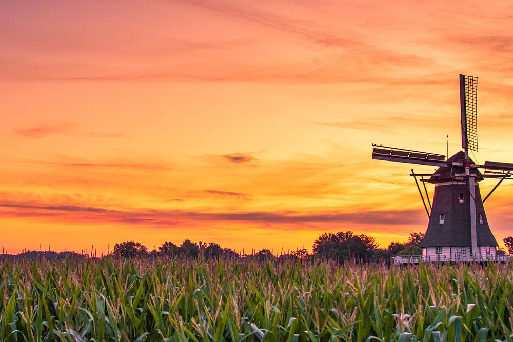Die Windmühle De Zwaan in Voorst erhebt sich hoch über dem Mais.