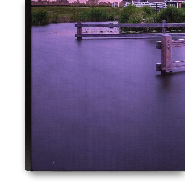 Bestelle dieses Landschafts-Wandbild Windmühle Kinderijk von Juul Hekkens als Reproduktion auf Leinwand, Alu-Dibond, als Poster, Fototapete oder Acrylglasbild.