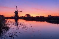 Windmühle im Polder, kurz vor Sonnenaufgang.