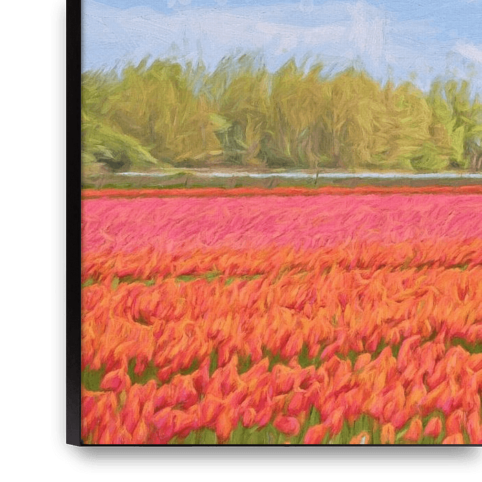 Bestelle dieses Landschafts-Wandbild Windmühle zwischen roten Tulpen digital art von eric van der eijk als Reproduktion auf Leinwand, Alu-Dibond, als Poster, Fototapete oder Acrylglasbild.