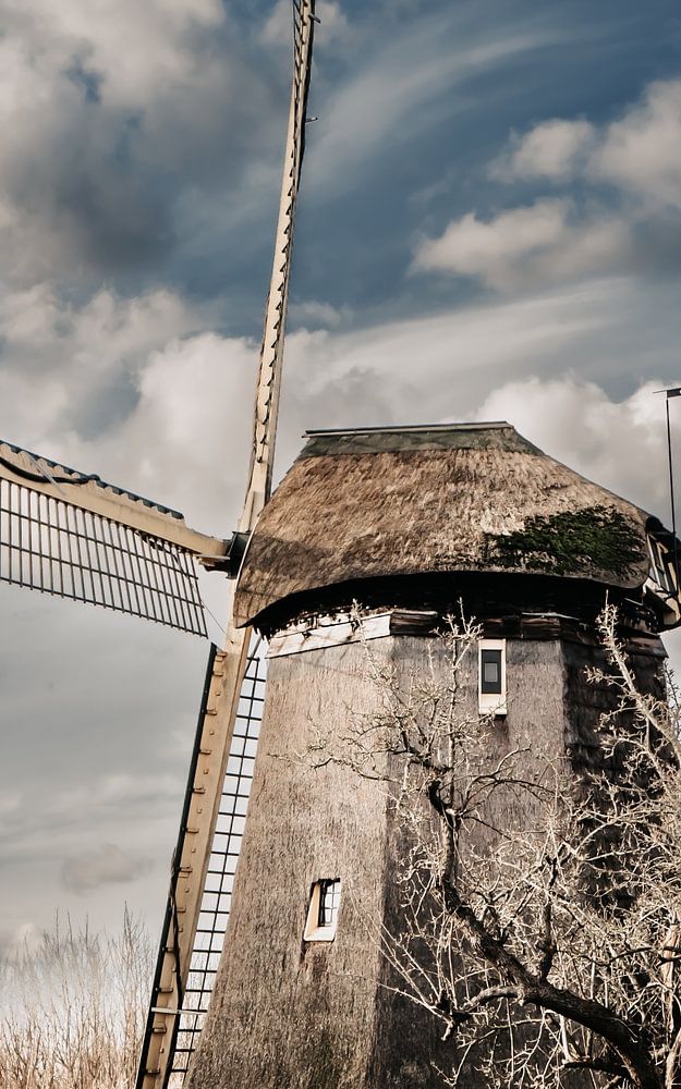Eine historische Windmühle aus den Niederlanden. Ein Stück Kunst und Technik. Diese Windmühlen wurden einst zum Pumpen von Wasser verwendet, bis sie durch moderne elektrische Pumpen ersetzt wurden. Einige sind noch gut erhalten und machen sich gut an den Wänden Ihres Hauses.