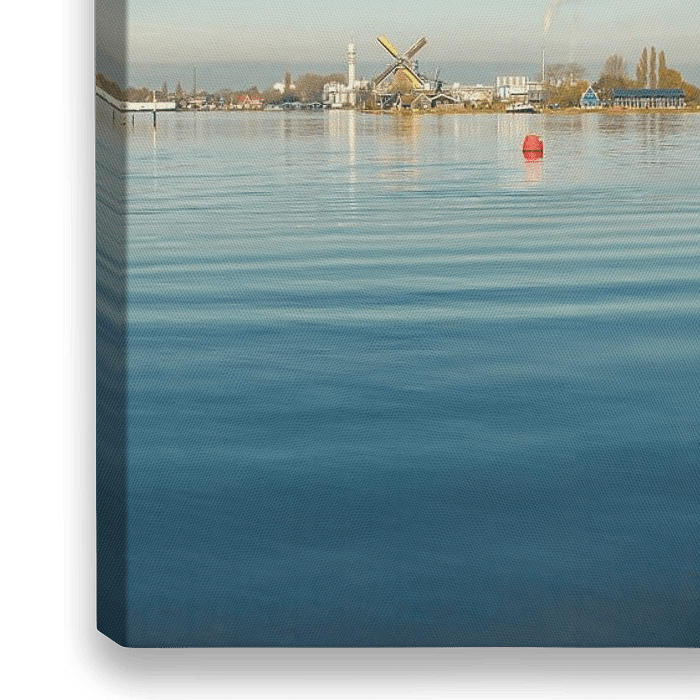 Windmühlen am Fluss Zaan in der Nähe der Zaanse Schans, Zaandam, Nordholland, Niederlande