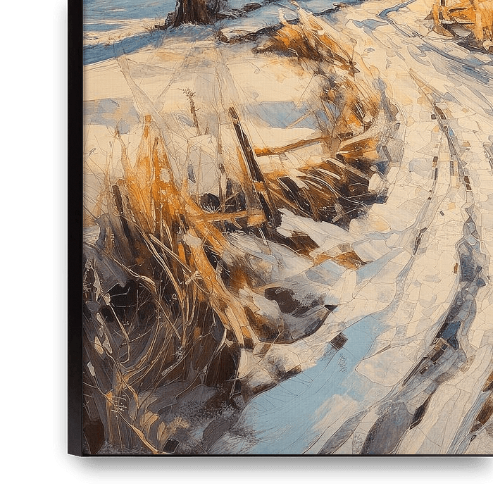 Ihre gewählte Kunst auf Leinwand, gespannt in einem Aluminiumrahmen. Schnell und einfach austauschbar für eine frische Ausstrahlung und ganz nach Ihren Wünschen.