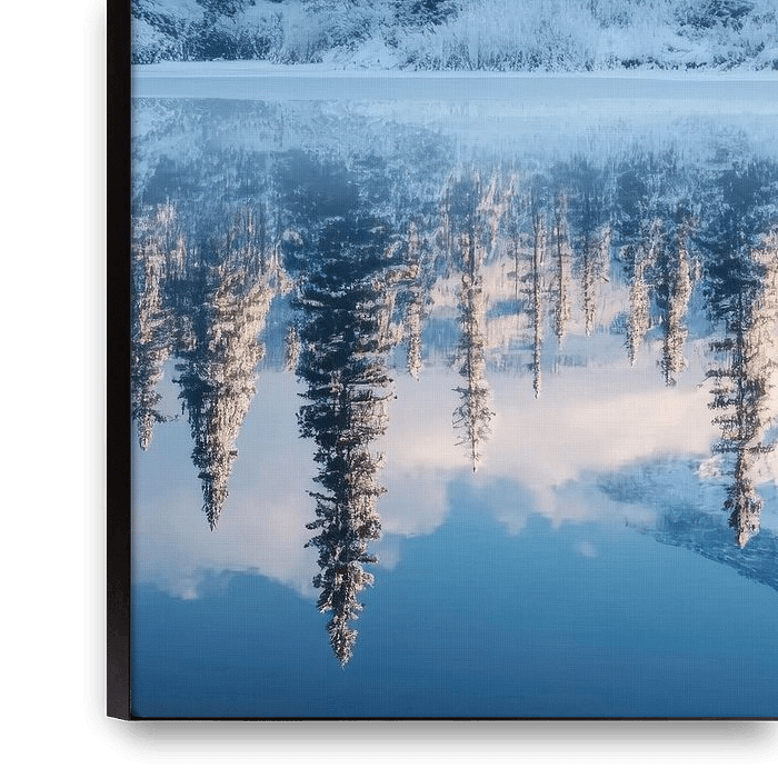 Bestelle dieses Landschafts-Wandbild Winterlandschaft Spiegelung von Poster Art Shop als Reproduktion auf Leinwand, Alu-Dibond, als Poster, Fototapete oder Acrylglasbild.