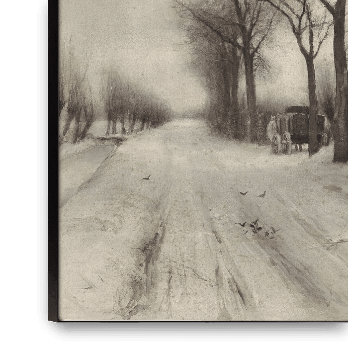 Bestelle Winterlandschaft mit Bauernhof an einer Allee, Louis Apol als Reproduktion auf Leinwand, Alu-Dibond, als Poster, Fototapete oder Acrylglasbild.