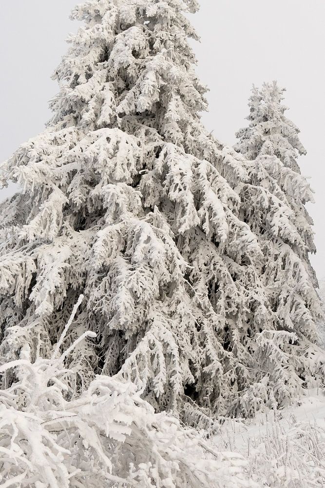 Wenn viel Schnee gefallen ist, verwandeln sich die Fichten in gar merkwürdige Gestalten.
