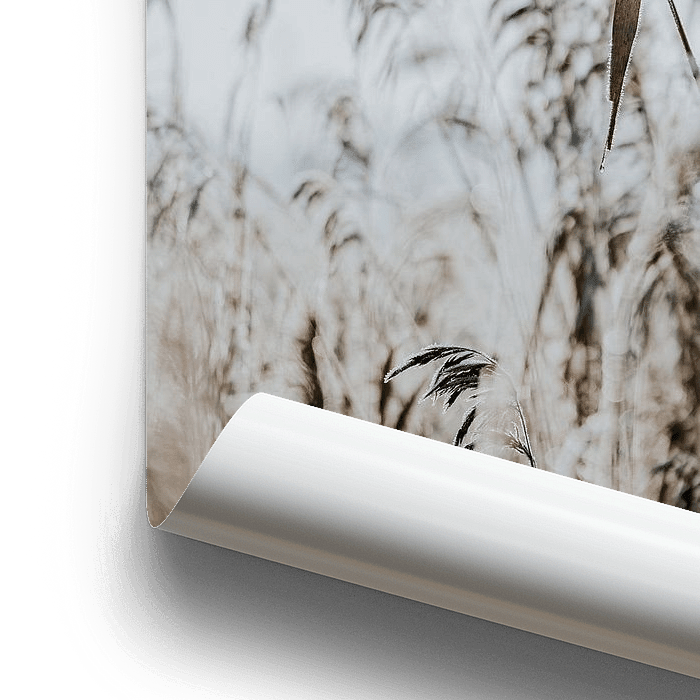 Diesmal Schilf im Winter, bedeckt mit einer Schicht aus schwarzem Eis. In diesem Bild vermittelt er jedoch auch eine warme Atmosphäre, da die Sonne auf ihn scheint.