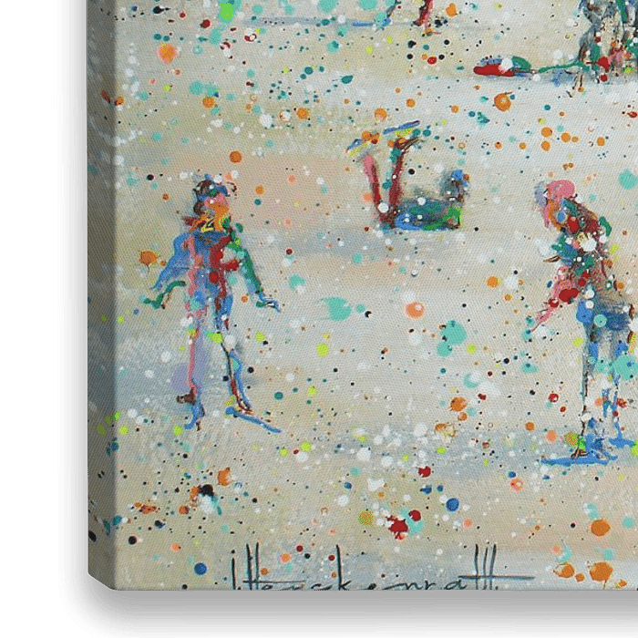 Gemälde vom Schlittschuhlaufen am Kinderdijk in den Niederlanden