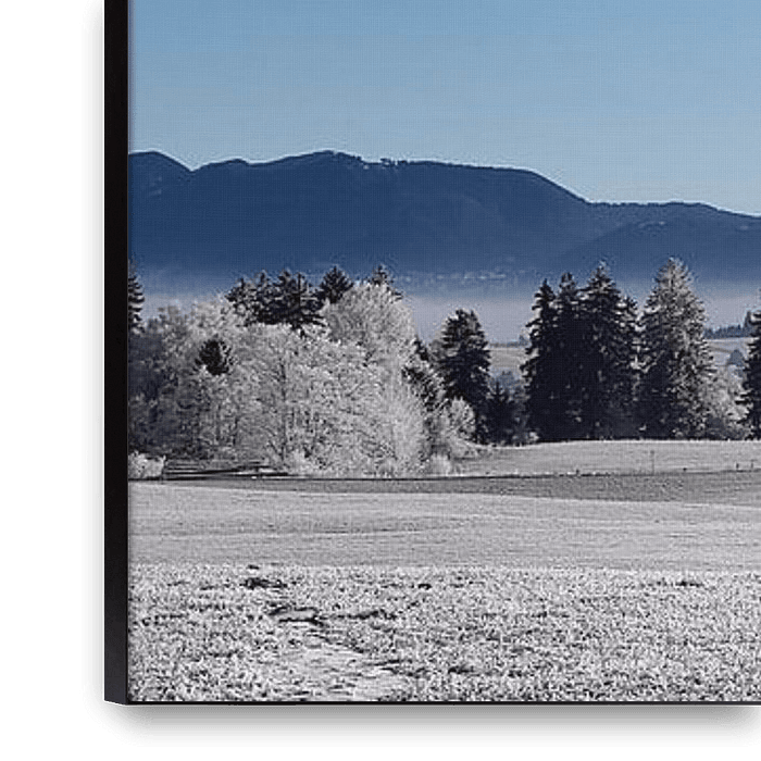 Bestelle dieses Landschafts-Wandbild Wintertag im Allgäu von Judith Kuhn als Reproduktion auf Leinwand, Alu-Dibond, als Poster, Fototapete oder Acrylglasbild.