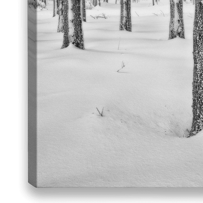In diesem tief verschneiten Wald ragen majestätische Kiefernstämme bildfüllend in die Höhe. Der enge Blickwinkel verdichtet das Bild sehr stark, was das Bild sehr intensiv wirken lässt. Im Vordergrund gibt es den…