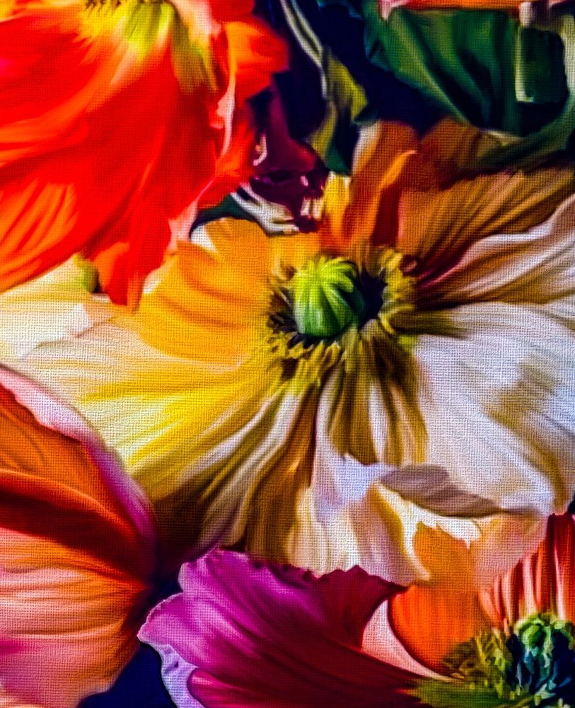 Die Farbe und Energie spritzt von der Leinwand, die Leinwand ist in 2 Versionen gemacht. Die kühne, energiegeladene, farbenfrohe Version und die romantische, ruhige Träumerin. Beide Seiten der gleichen Schöpferin, übersetzt durch ihre Lieblingsblume, den Mohn. Welche Seite passt zu Ihnen?