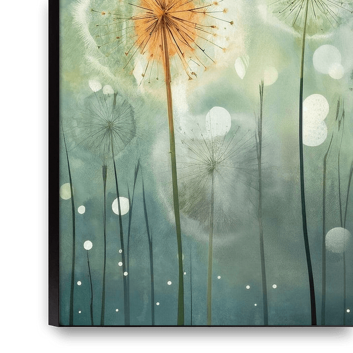 Bestelle dieses Blumen-Wandbild Wirbelstürme der Wünsche: Löwenzahnträume in der Kunst von Floral Abstractions als Reproduktion auf Leinwand, Alu-Dibond, als Poster, Fototapete oder Acrylglasbild.