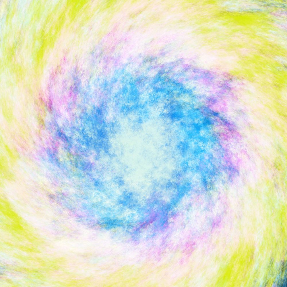 Abstrakte digitale Gouache Malerei eines Wirbelsturms in lila blau und gelb