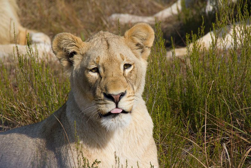 Bestelle dieses Löwen-Wandbild Witte leeuw von Irene de Moree als Reproduktion auf Leinwand, Alu-Dibond, als Poster, Fototapete oder Acrylglasbild.
